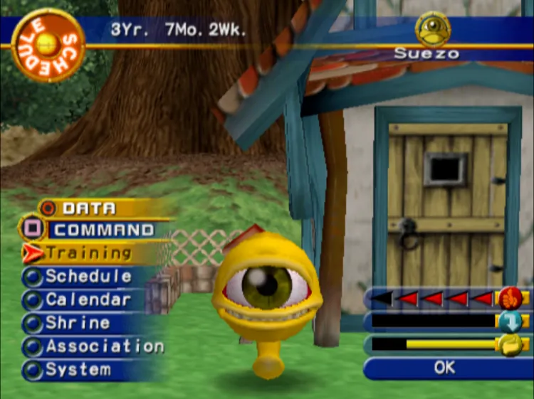 With the introduction to this game, the player can raise up to 5 monsters and begin 'Free Time'. Each monster can have drills scheduled up to 8 weeks and set tournaments on the weekend. Free Time is when the player would interact with each monster to feed, praise/scold, or give an item. After Free Time, the weekend would begin to do other activities. If tournaments are not set, the player can instead visit different towns to purchase items and speak to various people. In addition, dungeons or adventures can be explored to learn new skills, traits and find useful items.
